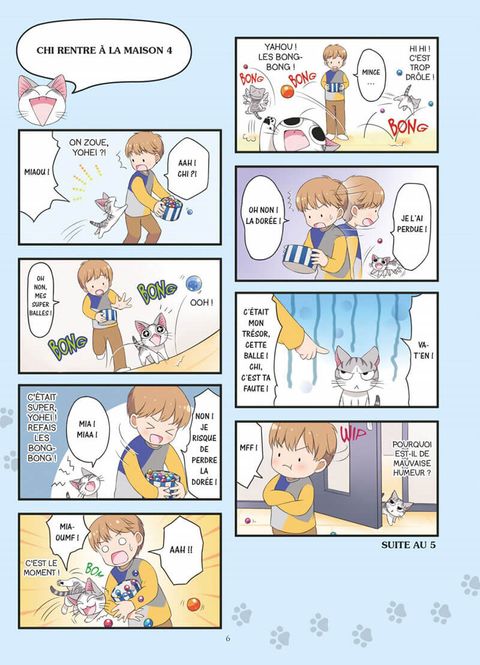 Les pitreries du plus mignon des chatonsChi passe au format "manga en 8 cases", soit une mini-aventure par page ! Ainsi concentrées, les aventures de Chi sont agréables et faciles à lire, adaptées aux plus jeunes qui ont pu découvrir la série dans le dessin animé 3D éponyme sur Piwi, Canal+ Family ou Amazon Prime. En sens français et en couleurs, ce manga sera l'outil idéal pour débuter dans la lecture des mangas... ou la lecture tout court !