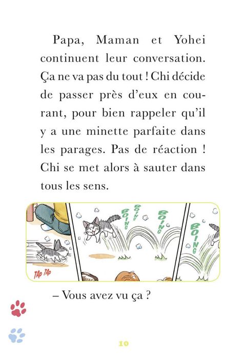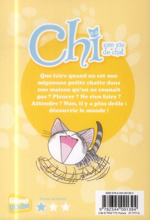 Adapté du célèbre manga, Chi raconte l'histoire d'un petit chat recueilli par une famille et son évolution au sein de cette famille. Chaque histoire met en scène un moment marquant de cette vie de chat : sa première rencontre avec une auto, avec un chien, comment il va apprendre à faire ses besoins dans la litière, le bon goût des croquettes, la chaleur du soleil à travers les vitres, le confort ouaté des pantoufles de papa, etc. Conçue pour un très jeune public qui découvre la lecture, Chi en Glénat Poche apportera aux plus petits une « initiation » au Manga.