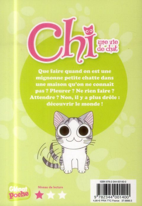 Adapté du célèbre manga, Chi raconte l'histoire d'un petit chat recueilli par une famille et son évolution au sein de cette famille. Chaque histoire met en scène un moment marquant de cette vie de chat : sa première rencontre avec une auto, avec un chien, comment il va apprendre à faire ses besoins dans la litière, le bon goût des croquettes, la chaleur du soleil à travers les vitres, le confort ouaté des pantoufles de papa, etc. Conçue pour un très jeune public qui découvre la lecture, Chi en Glénat Poche apportera aux plus petits une « initiation » au Manga.