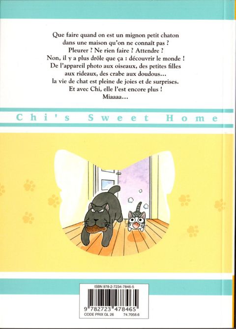 Que faire quand on est un mignon petit chaton dans une maison qu'on ne connaît pas ? Pleurer ? Ne rien faire ? Attendre ? Non, il y a plus drôle que ça : découvrir le monde ! De l'appareil photo aux oiseaux, des petites filles aux rideaux, des crabe aux doudous. La vie de chat est pleine de joies et de surprises. Et avec Chi, elle l'est encore plus ! Miaaaa.