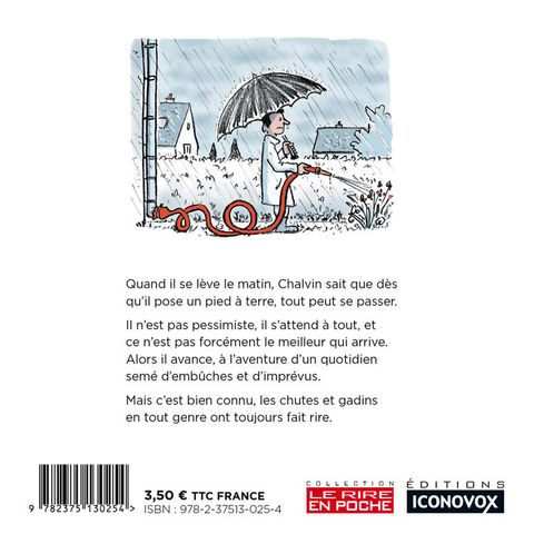 Quand il se lève le matin, Chalvin sait que dès qu'il pose un pied à terre, tout peut se passer. Il n'est pas pessimiste, il s'attend à tout, et ce n'est pas forcément le meilleur qui arrive. Alors il avance, à l'aventure d'un quotidien semé d'embûches et d'imprévus. Mais c'est bien connu, les chutes et gadins en tout genre ont toujours fait rire.