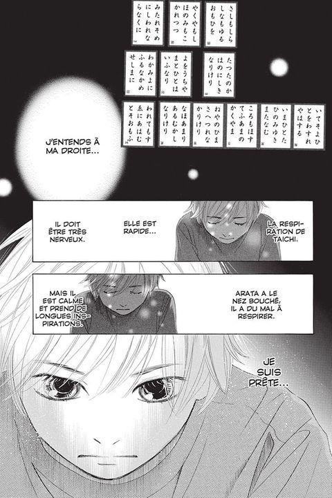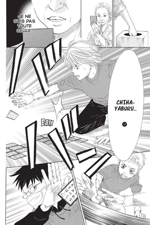 Chihaya participe à sa dernière compétition junior en équipe avec Arata et Taichi. Mais le printemps arrive, avec sa cérémonie de remise des diplômes et ses douloureuses séparations. Quelques années plus tard, Chihaya est maintenant au lycée, mais n'a rien perdu de sa passion : malgré la distance, elle désire toujours plus que tout pouvoir un jour jouer de nouveau au karuta avec ses deux amis. Alors qu'elle vient d'être promue rang A, Chihaya téléphone à Arata pour lui annoncer la nouvelle... mais la réaction de son ancien ami la laisse sans voix...