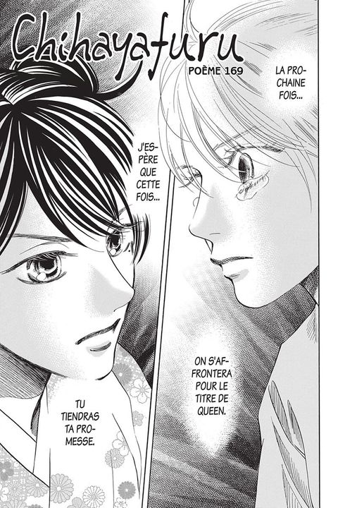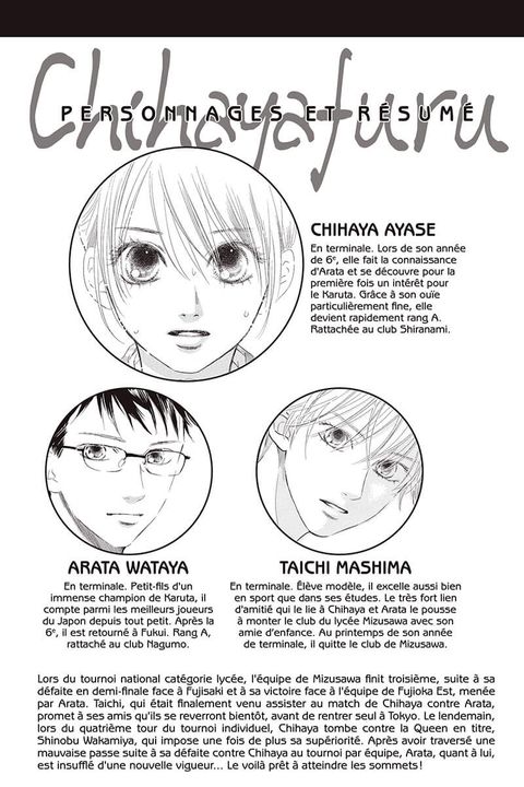 Alors que le tournoi national par équipe s'achève pour Chihaya et ses amis, Taichi, qui était venu assister à leur dernier match, leur promet que leurs chemins se recroiseront prochainement. Le lendemain a lieu le tournoi individuel, qui bat son record d'inscriptions. La compétition se déroule dans la salle Urayasu, comme un prélude au match pour le titre de Queen qui a lieu en hiver... Chihaya y défie même pour la deuxième fois la Queen, Shinobu Wakamiya. De son côté, Arata, revigoré par l'annonce de Taichi, enchaîne les victoires. Le tout dernier match sera somptueux. Mais quelle en sera l' issue ?