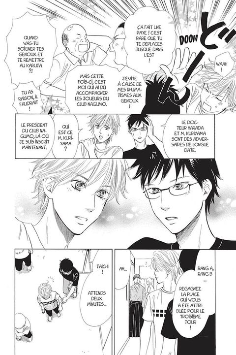 Alors que les examens de mi-trimestre vont bientôt commencer, Taichi s'est inscrit seul à une compétition de karuta pour enfin passer rang A : c'est sa dernière chance de pouvoir participer aux sélections du tournoi pour les titres de Maître et de Queen, ouvert seulement aux meilleurs joueurs. Hélas, il se fait éliminer dès le 3e tour. Chihaya, venue le soutenir, est déçue pour son ami mais son attention se détourne très vite lorsqu'elle apprend qu'Arata est là lui aussi. Il n'a pas encore retrouvé son niveau d'antan mais il est bel et bien de retour : Chihaya et Taichi sont très émus de revoir leur vieil ami à l'oeuvre, comme par le passé. Prochaine étape : les sélections de l'Est du Japon ! Chihaya va devoir défendre chèrement sa place. Sa première adversaire est une fillette de 11 ans, petit prodige du karuta...