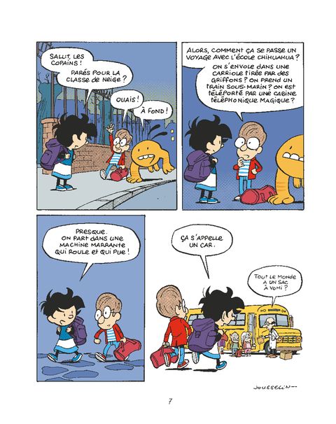 Pas d'école ce matin pour Paul, Groui, Gilbert et leurs amis, car c'est le jour du départ pour la montagne, en classe de neige. L'aventure commence dès le voyage en car et sa conductrice aux yeux instables... et se poursuit dans le drôle d'hôtel où ils sont hébergés - mais qui est son véritable propriétaire ? Sans compter que la pleine lune s'annonce, et avec elle la transformation de Paul en loup-garou... Bref, des vacances bien monstrueuses pour l'école Chihuahua !