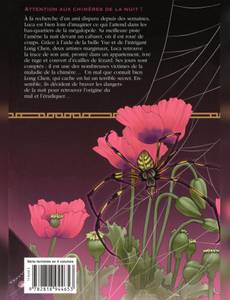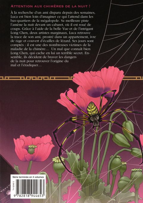 À la recherche d’un ami disparu depuis des semaines, Luca est bien loin d’imaginer ce qui l’attend dans les bas-quartiers de la mégalopole. Sa meilleure piste l’amène la nuit devant un cabaret, où il est roué de coups. Grâce à l’aide de la belle Yue et de l’intrigant Long Chen, deux artistes marginaux, Luca retrouve la trace de son ami, prostré dans un appartement… ivre de rage et couvert d’écailles de lézard. Ses jours sont comptés : il est une des nombreuses victimes de la maladie de la chimère… Un mal que connaît bien Long Chen, qui cache en lui un terrible secret. Ensemble, ils décident de braver les dangers de la nuit pour retrouver l’origine du mal et l’éradiquer…
