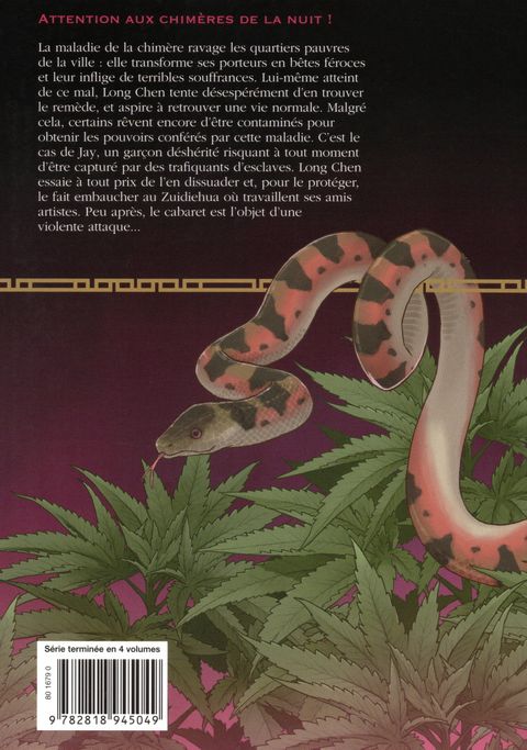 À la recherche d'un ami disparu depuis des semaines, Luca est bien loin d'imaginer ce qui l'attend dans les bas-quartiers de la mégalopole. Sa meilleure piste l'amène la nuit devant un cabaret, où il est roué de coups. Grâce à l'aide de la belle Yue et de l'intrigant Long Chen, deux artistes marginaux, Luca retrouve la trace de son ami, prostré dans un appartement... ivre de rage et couvert d'écailles de lézard. Ses jours sont comptés : il est une des nombreuses victimes de la maladie de la Chimère... Un mal que connaît bien Long Chen, qui cache en lui un terrible secret. Ensemble, ils décident de braver les dangers de la nuit pour retrouver l'origine du mal et essayer de trouver un remède...