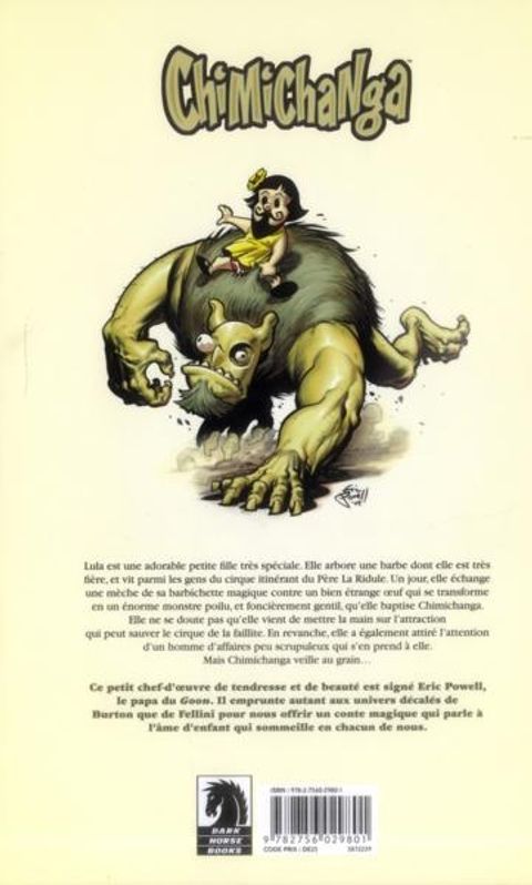 Lorsque la fillette à barbe du cirque ambulant Wrinkle récupère un œuf qui se transforme en monstre, les ennuis commencent. Et oui, ce n’est pas tous les jours facile de gérer Chimichanga le monstre, car il prend beaucoup de place, ce qui n’est pas du goût de tout le monde. Et lorsque les hommes s’en prennent à sa petite maîtresse, le gentil monstre n’hésite pas une seconde… L’amitié triomphe de tout !