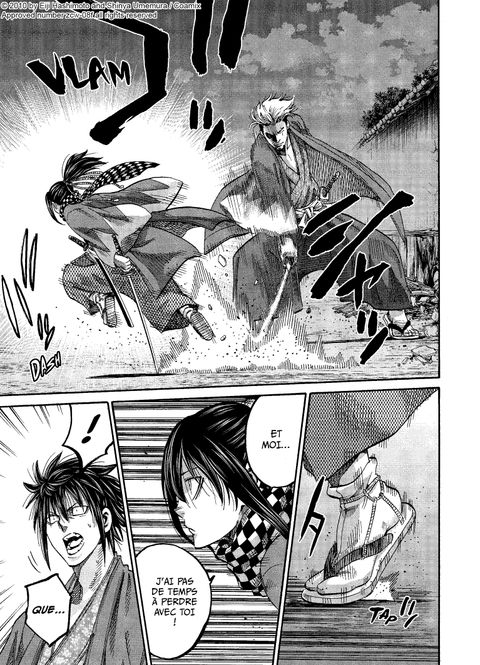 La bataille opposant les sept démons du Mito Tengu-to et les hommes de Kondô touche bientôt à sa fin ! Abandonné par Okita en route pour retrouver Serizawa, Toshizo Hijikata se retrouve seul face à Gorô Hirayama, le bretteur borgne. Tout amène à la collision de leurs deux tempéraments destructeurs. Au cours de cette nuit, certains samouraïs pourraient bien y perdre la vie...<em>Chiruran</em>est un <em>shônen</em> captivant et explosif, servi par le dessin magnifique d'Eiji Hashimoto et la narration dynamique de Shinya Umemura. Découvrez les aventures de ses personnages charismatiques dans cette fresque historique !