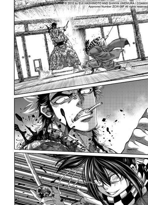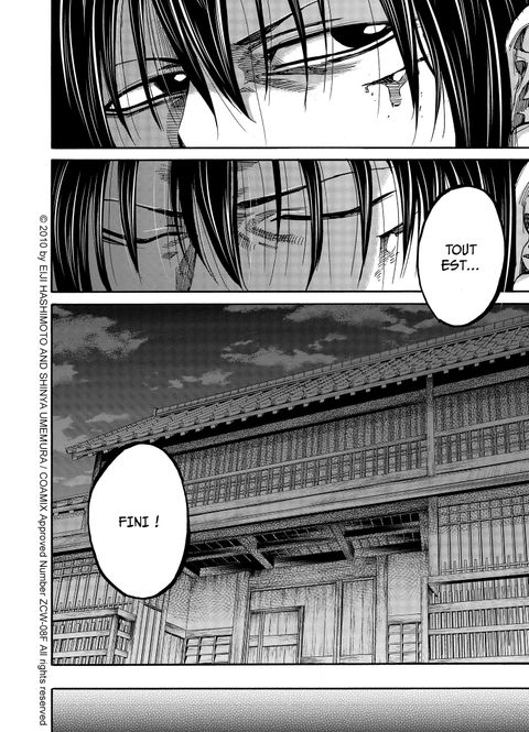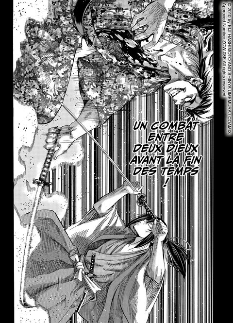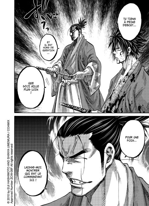Le conflit qui a plongé les rues de Kyoto dans la terreur touche à sa fin et le destin du Shinsen Gumi ne repose plus que sur les épaules de deux hommes.Face au démon Kamo Serizawa se dresse un autre monstre, qui vit caché tout au fond de Sôji Okita. Chacun persuadé d'être le plus fort, ils croisent le fer lors d'un duel dans lequel ils mettent en jeu leurs convictions, et surtout leur vie...<em>Chiruran</em>est un <em>shônen</em> captivant et explosif, servi par le dessin magnifique d'Eiji Hashimoto et la narration dynamique de Shinya Umemura. Découvrez les aventures de ses personnages charismatiques dans cette fresque historique !