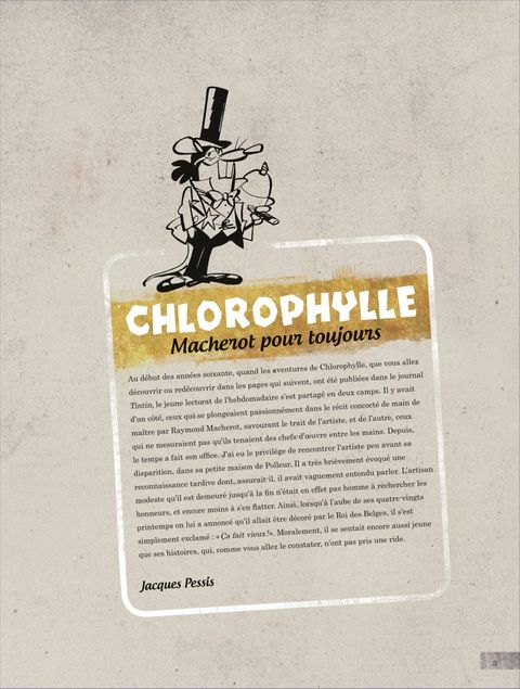 Ce volume reprend La revanche d'Anthracite, Chlorophylle joue et gagne, Le furet gastronome, Chlorophylle à la rescousse, Le klaxon de vérité et des bonus de l'époque par Macherot (La petite jungle du Vallon fleuri, Pipelette, En promenade avec le Père Matthieu)