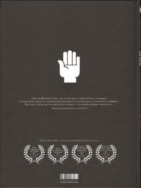 Suite et fin de ce triptyque choc. On continue d’apprendre un peu mieux la vie de ce gentleman au masque de chevalier. La fin de ce tome est des plus interessante car ouverte et surtout nous permet de revoir deux personnages au combien important pour Monsieur Choc. Ce tome conclue (...) Voir le commentaire