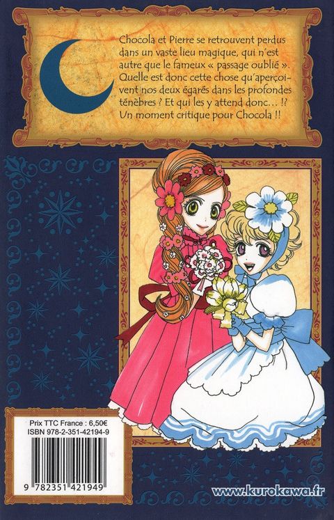 Chocolat et Pierre se retrouvent perdus dans un vaste lieu magique, qui n'est autre que le fameux "passage oublié". Quelle est donc cette chose qu'aperçoivent nos deux égarés dans les profondes ténèbres ? Et qui les y attend donc...!oe Un moment critique pour Chocolat!!\0