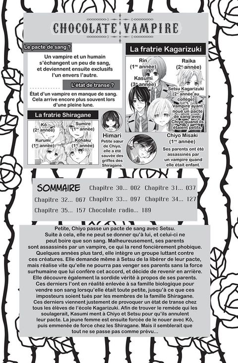 Chiyo, simple humaine, et Setsu, issu d'une puissante famille de vampires, ont grandi ensemble et de leur amour est né un pacte du sang. À l'adolescence, leur lien se distant mais la jeune fille accepte toutefois de rester la source de vie de Setsu, en échange de son aide pour retrouver les vampires responsables de la mort de ses parents.