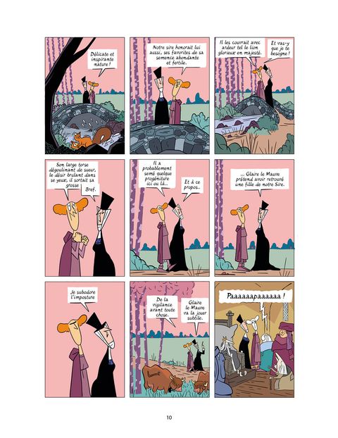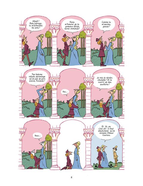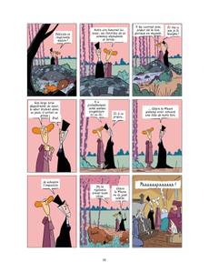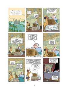 Après une page-titre qui nous spoile la surprise des premières pages et l’identité du voyageur mystérieux et lugubre, par monts et par vaux, à travers les villages et les campagnes, voilà que nous pénétrons dans le petit théâtre de Jean-Christophe Mazurie. Chronique à lire en ingégralité et avec plein d'extraits L’auteur a une patte pour griffer ses personnages (très cartoonesque et esquissés mais avec de la personnalité). Il les ensorcelle pour qu’ils échappent au canevas habituels dans les récits de ce genre, quitte à avoir des contre-emplois. La mort arrive dans le royaume, tout le monde est en émoi (ou fait mine de l’être) mais très vite chacun veut tirer la couverture à lui. Même la plèbe qui, d’ordinaire, n’a pas voix au chapitre, se dit qu’elle a un coup à jouer. Pour être calife, ou plutôt, roi, à la place du calife. Gag après gag, mais dans une continuité d’une petite histoire, Jean-Christophe Mazurie s’amuse, comme on le ferait de petits soldats ou de marionnettes, et parodie cette cour des miracles. Il y en a pour tous les goûts et toutes les sensibilités : l’amour courtois, la religion et le malsain esprit, les bandits de grand chemin qui ne demandent qu’à apprendre… la politesse et le bien parler, les complots et les enfants cachés mais complètement cramés, la dure vie paysanne. Puis, ça s’excite, ça s’excite, mais si tombe, il est déjà mort ce roi, remplacé par un sosie, non? Avec ces ingrédients délirants et un dessin synthétique et créatif, Jean-Christophe Mazurie tourne autour du pot et n’arrive malheureusement pas à conclure. Il y avait moyen d’allumer un feu d’artifice, c’est finalement un pétard (...) Voir le commentaire