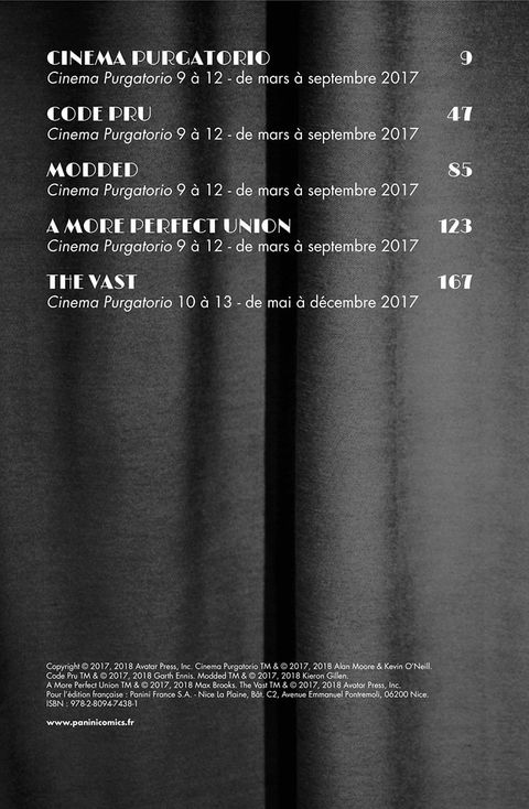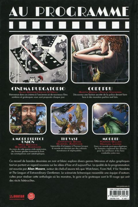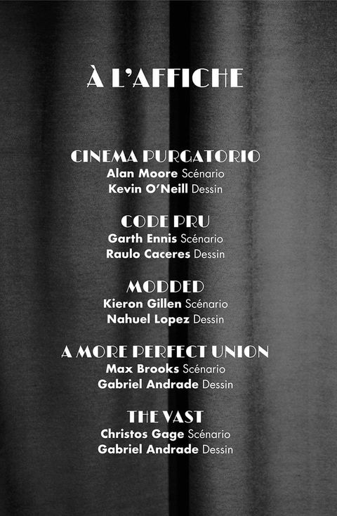 Cette anthologie en noir et blanc, créée par Alan Moore et Kevin O'Neill (l'équipe de La Ligue des Gentlemen Extraordinaires), propose l'avant-dernière partie des récits de science-fiction ou d'horreur concoctés par les plus grands noms des comics : Kieron Gillen (Star Wars), Max Brooks (World War Z), Garth Ennis (Punisher) ou encore Christos Gage (Avengers Academy).