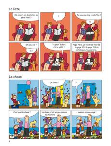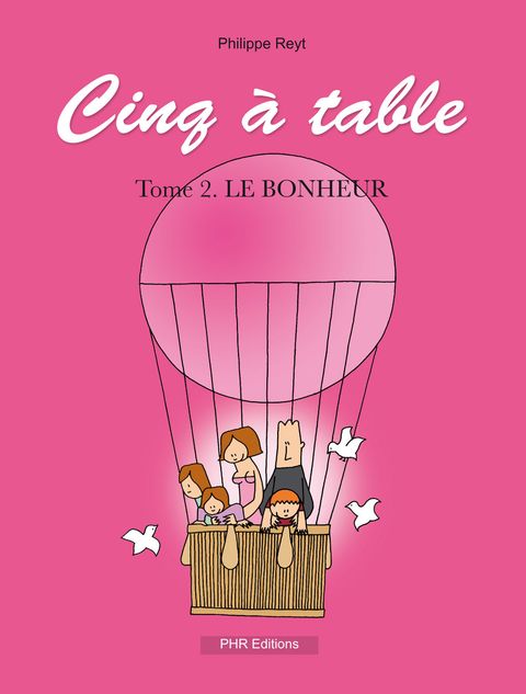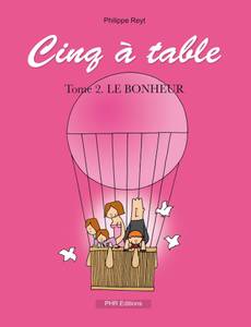 Le cadeau idéal pour un papa ou une maman, une épouse ou un mari : enfin une bande-dessinée qui pose le regard tendre des parents sur la vie de famille, l'humour involontaire et décalé de nos chères têtes blondes, leurs bêtises et leurs inventions, toujours géniales. Cinq à table est une BD tout public destinée aux parents. Construit sur le modèle des comic strips anglo-saxons, l'album propose 92 saynètes indépendantes de cinq ou six cases qui en facilitent la lecture par un public jeune ou non bédéphile. Le trait simple, la palette colorée volontairement réduite et les textes brefs participent d'un univers enfantin qui laisse toute sa place à l'imaginaire et l'expérience du lecteur.
