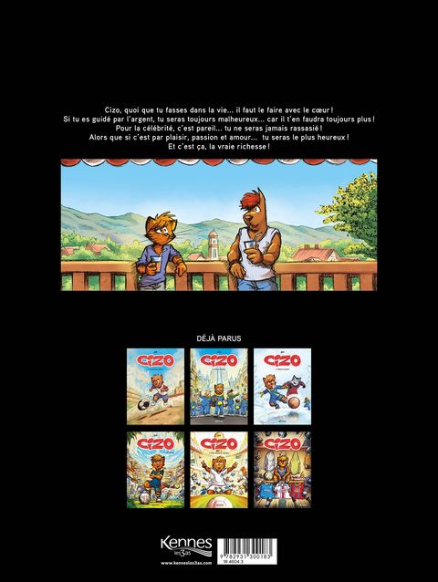Découvrez l’incroyable histoire de Zandro Cizo, un chat tigré de 17 ans, future star du ballon rond. D’abord jugé trop chétif pour ce sport, il devient l’espoir d’une Europe devenue fantomatique sur le plan footballistique. Sa chance, Cizo la devra à Mattéo Di Magio, ancien champion bien décidé à redorer le blason de son continent.Une BD faite de références au football d’hier et d’aujourd’hui.Un véritable caviar signé Aré. Pour petits et grands, sans hésitation !Il reste plus que 45 minutes à Cizo et ses coéquipiers dans cette demi-finale qui les oppose aux Guérilléros  qui mène par 1 but à rien.Une victoire permettra au gagnant d’obtenir son billet pour la grande finale de la super Coupe des Continents !Que le spectacle continue !Cizo est enfin en pleine possession de ses moyens, aligné avec lui -même et les événements traumatisants de son enfance.Avec une équipe soudée, et tout l’amour du football, il est prêt à tout donner pour vivre ses rêves.
