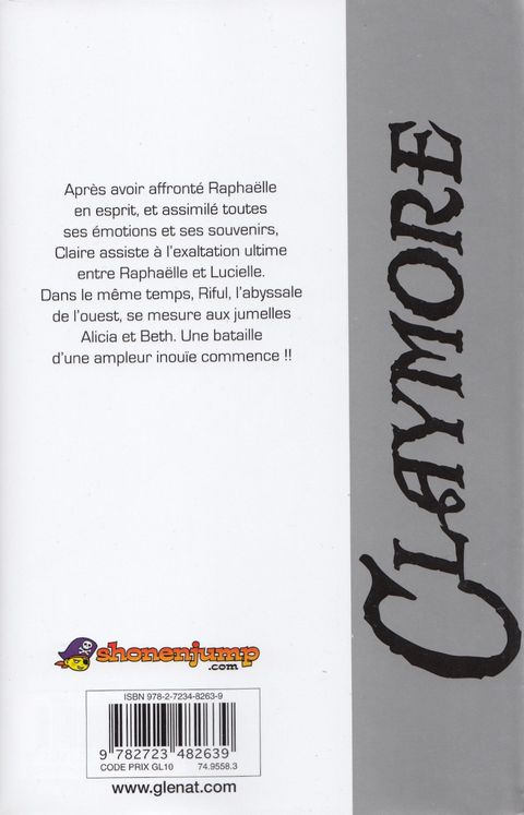 Après avoir affronté Raphaëlle en esprit, et assimilé toutes ses émotions et ses souvenirs, Claire assiste à l'exaltation ultime entre Raphaëlle et Lucielle. Dans le même temps, Riful, l'abyssale de l'ouest, se mesure aux jumelles Alicia et Beth. Une bataille d'une ampleur inouïe commence.