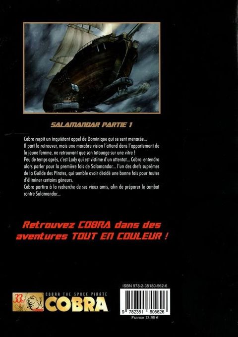 Cobra reçoit un inquiétant appel de Dominique qui se sent menacée... Il part la retrouver, mais une macabre vision l'attend dans l'appartement de la jeune femme, ne retrouvant que son tatouage sur une vitre ! Peu de temps après, c'est Armanoïde qui est victime d'un attentat... Cobra entendra alors parler pour la première fois de Salamandar... L'un des chefs suprêmes de la Guilde des Pirates, qui semble décidé à éliminer certains gêneurs. Cobra partira à la recherche de ses vieux amis, afin de préparer le combat contre Salamandar...