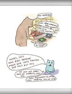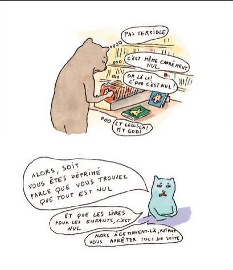 « Les livres de gosses, tu me donnes un crayon, je t'en fais autant ! » Adversaire de la mièvrerie et de la bagarre, Nadja refuse de nourrir ce conflit vieux comme le mauvais goût parental et préfère offrir un tour d'horizon exhaustif de ce qu'il est essentiel de connaître avant de se lancer dans une carrière d'auteur à succès. Efficacité garantie ( surtout si l'on est un ours ou une souris ).