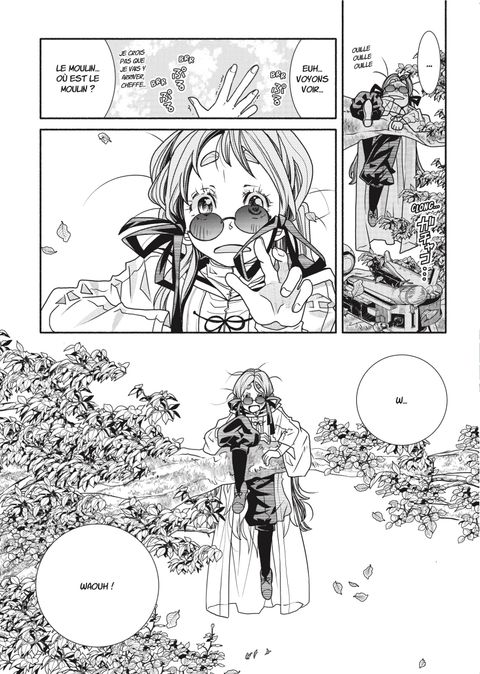 Après la Venise d'Aria et la mer d'Amanchu!, explorez le village perché imaginé par Kozue Amano ! Bâti sur une île céleste, le village d'Onobori est entouré de longues bannières flottant au gré du vent. On dit qu'elles protègent du danger toujours présent, dans une bourgade où le moindre faux pas mène à une chute fatale... Sur son scooter volant, Nodoka s'y rend pour la première fois avec une mission : trouver la petite Aka, aussi adorable que maladroite du haut de ses quatre ans ! La fillette vit avec son grand-père dans un moulin à vent rénové en joli café. Son passe-temps préféré : l'exploration ! Ce jour-là, Aka a décidé de pique-niquer sous les cerisiers en fleur. Nodoka observe avec inquiétude la petite fille braver seule le vide au fil des ruelles labyrinthiques et des escaliers escarpés. Mais le jeu en vaut la chandelle : les arbres autour du sanctuaire du quartier offrent un spectacle grandiose ! À y regarder de plus près, dans leurs branches se cache une ombre... ou plutôt un immense chat noir ! Serait-ce un dieu local ? Quoi qu'il en soit, Aka n'hésite pas à partager son repas avec lui et à s'en faire un ami... Nouvelle venue dans ce hameau enchanteur, Nodoka n'est pas au bout de ses surprises ! Après Aria et Amanchu!, Kozue Amano nous embarque dans un nouveau monde de fantasy onirique ! Douce et sucrée, cette épopée tout public se déguste comme un bonbon. Machines volantes, paysages de rêve et magie du quotidien se dévoilent à travers les yeux de la petite Aka. Retrouvez la candeur de l'enfance et laissez-vous porter par le souffle lyrique de Colori Colore Creare !