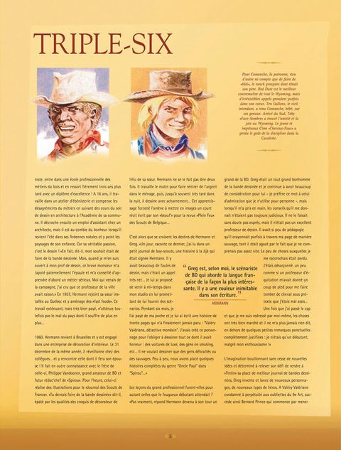 En 1969, le journal «Tintin» entame la publication du western «Comanche» dessiné par Hermann sur un scénario de Greg. Dès les premières planches, on pressent que cette nouveauté fera date dans l'Histoire de la BD. Le premier chapitre plante le décor et présente les protagonistes. Avec l'aide d'un vieux domestique, une jeune et jolie fermière appelée Comanche s'obstine à exploiter les terres que feu son père lui a léguées. Le courage de ce petit bout de femme au caractère bien trempé ne suffit pourtant pas à sauver son ranch «666» d'une faillite annoncée. Un jour, surgit un certain «Red Dust». Séduite par la force tranquille de cet inconnu, Comanche lui confie le poste de contremaître. Bientôt, se prépare la première vente de bétail. Dépossédées de leurs terres et privées de leurs moyens traditionnels de subsistance par les colons blancs, les tribus cheyennes réclament leur part de richesses et «Les Guerriers du Désespoir» déterrent la hache de guerre. Des hors-la-loi tentent d'intercepter les gains des ranchers. Convoyant les fruits de durs mois de labeur au ranch «666», Red Dust s'acharne à piéger «Les Loups du Wyoming» dont la voracité risque d'anéantir les efforts accomplis. «Le Ciel est rouge sur Laramie» et Red Dust part sur la piste d'un tueur qui ne laisse que désolation derrière lui et qu'une obscure obsession de vengeance le pousse à éliminer... Condamné pour le meurtre du tueur, Red Dust ne croupit pas longtemps en prison. Sitôt libéré, il rejoint Comanche. Mais, dans «Le Désert sans Lumière», d'autres prédateurs menacent le ranch «666». A suivre donc.