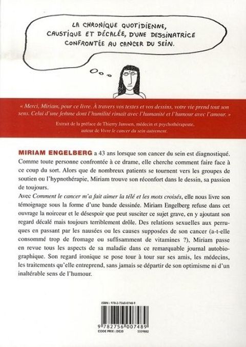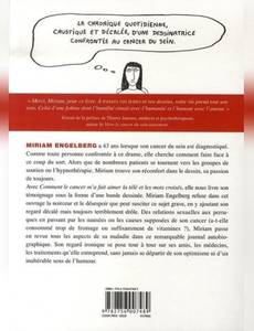 Miriam a 33 ans lorsqu'on lui diagnostique un cancer du sein. Alors que certains malades revendiquent l'efficacité des groupes de soutien, elle trouve son réconfort dans le dessin. Des relations sexuelles au port de la perruque, des nausées aux moments de désespoir, elle aborde tous les aspects de sa maladie avec un regard lucide et acide... sans jamais perdre son sens de l'humour.