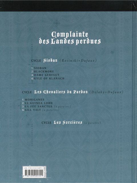 Rosinski, dessinateur de Thorgal, et Dufaux, l'un des meilleurs scénaristes actuels, nous font découvrir l'univers de Sioban, princesse sans royaume mais animée d'une extraordinaire soif de vengeance et de reconquête ! Complainte des landes perdues possède la force des récits fantastiques et la magie des légendes celtiques. En quatre albums, cette série fait déjà partie des indispensables.