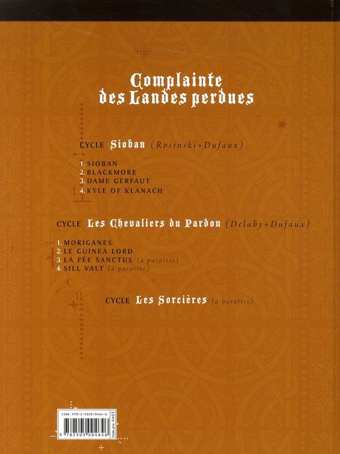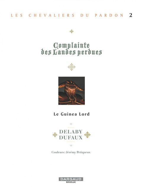 En 2004, Delaby avait succédé avec brio à Rosinski pour le nouveau cycle de la Complainte des Landes Perdues. Cet album, Moriganes, est aujourd'hui réédité en tome 1 du cycle des Chevaliers du Pardon. En même temps parait le Tome 2, Guinéa Lord. Seamus et Sill Valt doivent à nouveau chasser les Moriganes, ces sorcières qui détruisent les hommes et les terres. La lutte du bien contre le mal ! La lutte des Chevaliers du Pardon contre les âmes sombres et cruelles ! Les légendes celtiques traversent cette saga mythique pour nous la rendre plus merveilleuse encore.