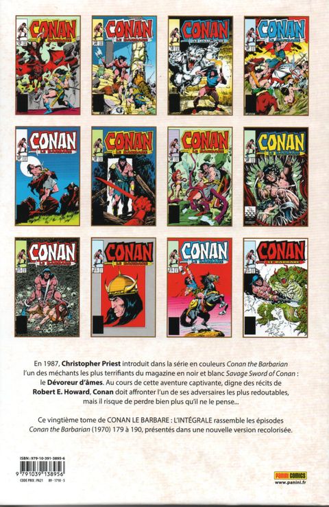 Dans ces épisodes classiques, Conan affronte le redoutable Dévoreur d'Âmes et ses sinistres alliés, défend la cité d'El Shah Maddoc, et règle ses comptes avec ses ennemis ! Mais le combat le plus féroce reste celui qu'il mène contre lui-même... Retrouvez des aventures rares du Cimmérien dans ce nouveau volume de l'intégrale