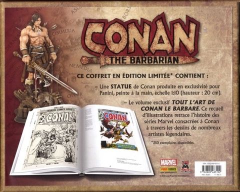 Conan le Barbare revient dans une édition exceptionnelle présentée dans un très beau coffret. L'album arbore une magnifique couverture variante avec un effet simili cuir et un marquage à chaud. Une spectaculaire statuette exclusive du Barbare de 27 cm complète cette édition spéciale : elle a été créée spécialement pour cette version collector et représente le Conan de la couverture variante. Cette édition exceptionnelle, limitée à 250 exemplaires, est le parfait cadeau pour les fêtes de fin d'année pour tous les fans du personnage. La vie et la mort de Conan. Dans le premier tome de la série de Jason Aaron et Mahmud Asrar, nous suivons Conan, de sa naissance au milieu d'un champ de bataille jusqu'à son règne de roi barbare. Six récits sur six moments de sa vie qui dévoilent progressivement l'une des plus grandes menaces à laquelle le Cimmérien devra faire face...