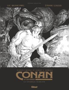 AcheterAlbum créé dans la bedetheque le 16/02/2019 (Dernière modification le 05/02/2022 à 12:00) par Jean-Phi Conan le Cimmérien 5. La Citadelle écarlate Une BD de Luc Brunschwig et Étienne Le Roux chez Glénat - 2019 03/2019 (27 mars 2019) 56 pages 9782344022535 Grand format 359730 La déchéance d'un roi. La chute d'un royaume. Tout commence sur un champ de bataille. Conan, alors roi d'Aquilonie, affronte une coalition de traîtres menée par le sorcier Tsotha-Lanti qui, pour venir à bout de la rage du Cimmérien, use de ses sortilèges avant de le neutraliser de la plus lâche des façons. Capturé vivant, Conan est emmené dans les terribles geôles de la citadelle écarlate pour y subir un sort pire que la mort et obtenir son abdication, pendant que les armées du sorcier marchent vers sa capitale. L'horreur de la prison et la redoutable...