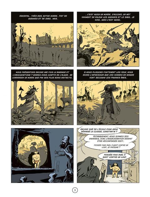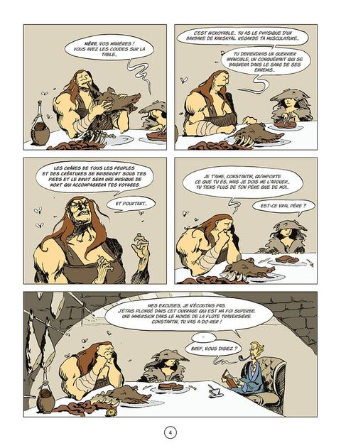 Barbare sensible et philanthrope, Constantin parcourt le monde sauvage de Karskyal pour le convertir aux luttes sociales et aux Lumières. Il rencontre Alia qui veut également découvrir le monde, surtout pour se battre. Ils feront équipe, elle armée de son épée, lui de ses livres, et surmonteront plusieurs épreuves jusqu'à affronter le despote Mort-Lune lors d'une campagne électorale improbable.