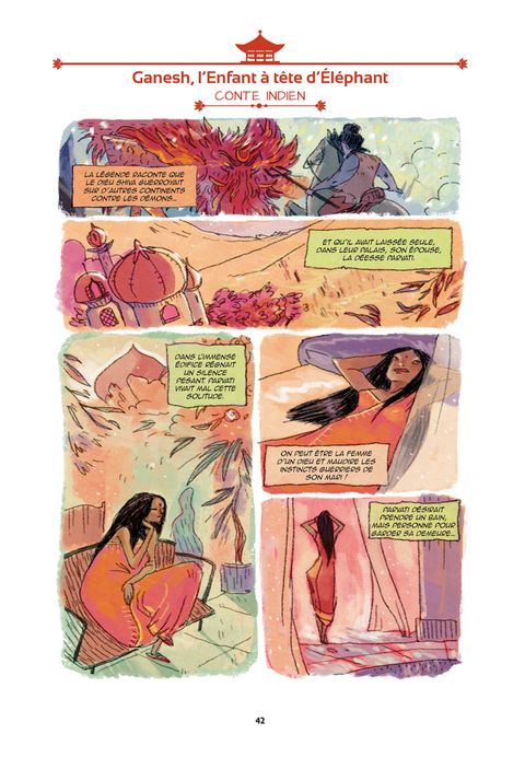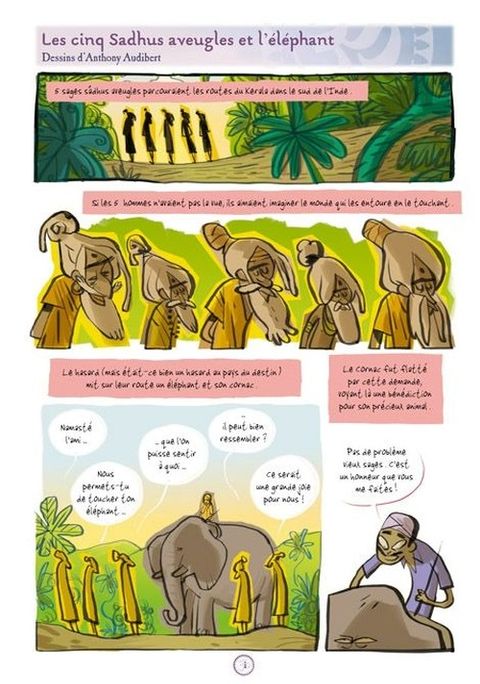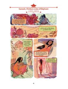 Destination inconnue mais tellement attirante ... C'est un voyage qui nous fait découvrir les trésors cachés de ce vaste pays et l'ahurissante richesse culturelle indienne. Sa diversité géographique, linguistique, historique et philosophique, ses peuples et innombrables traditions ont servi d'ingrédients à la composition des différents contes qui sont présentés. On est séduit par cette merveilleuse rencontre avec l'Inde... l'album se révèle immédiatement amusant et intrigant.