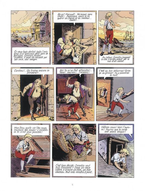 Dès son plus jeune âge, l'horizon de Corentin Feldoë s'annonce bien sombre. Soumis aux coups que son ivrogne d'oncle fait pleuvoir sur lui, il décide de prendre le large... L'invitation au voyage se présente sous les traits d'un fier trois-mâts à bord duquel il se glisse clandestinement. C'est le souffle de l'aventure qui en gonflera les voiles. Dessinée au gré des vents, la route de Corentin ne sera pas toujours calme. Mais elle l'emmènera loin... Des îles désertes aux rivages de la luxuriante Inde des Maharadjahs, Corentin écrit son propre conte, au fil des rencontres et des paysages, maintenant toujours le cap vers d'autres cieux, d'autres étoiles.