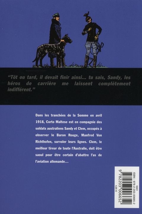 Avril 1918. L'aviateur allemand Von Richthofen, le Baron rouge, fait des ravages dans l'aviation et les tranchées alliées. A terre, Corto Maltese convoie avec deux militaires australiens un chargement de vins fins à destination du commandement anglais. Pour éliminer le Baron, Corto a une arme secrète : Clem, l'un des australiens, qui devient tireur d'élite dès qu'il est ivre...
