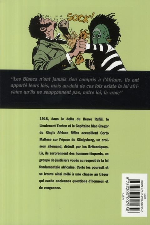 Dans le delta du fleuve Rufiji, quelque part au sud de Dar Es Salam sur la côte est de l'Afrique, Corto se prend d'intérêt pour l'étrange histoire du croiseur Königsberg, ultime témoignage de résistance des forces allemandes en Afrique orientale alors que la Première Guerre mondiale touche à sa fin. Une histoire d'autant plus intéressante qu'elle se conjugue avec celle d'un trésor - un coffret plein de sterlings d'or et de thalers d'argent. Sur fond de trahison et de règlements de compte, alors que rôdent les hommes-léopards, puissante organisation secrète qui depuis toujours régule les conflits en Afrique, Corto Maltese mène l'enquête.
