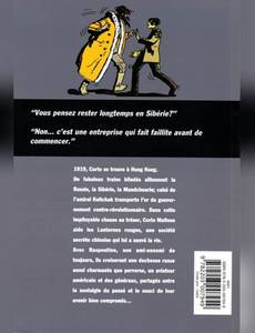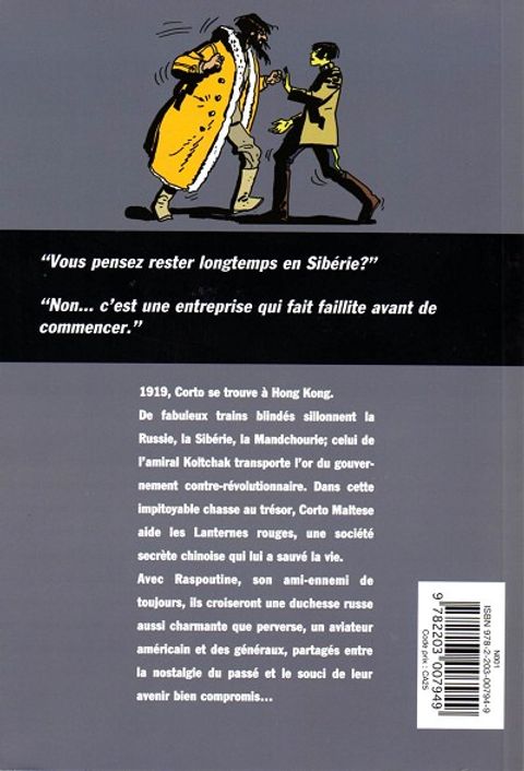 1919, corto se trouve à hong kong. De fabuleux trains blindés sillonnent la russie, la sibérie, la mandchourie ; celui de l'amiral koltchak transporte l'or du gouvernement contre-révolutionnaire. dans cette impitoyable chasse au trésor, corte maltese aide les lanternes rouges, une société secrète chinoise qui lui a sauvé la vie. avec raspoutine, son ami-ennemi de toujours, ils croiseront une duchesse russe aussi charmante que perverse, un aviateur américain et des généraux, partagés entre la nostalgie du passé et le souci de leur avenir bien compromis.