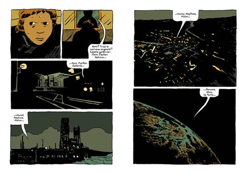 Cosimo n'est pas un jeune homme comme les autres : il parle très peu, réfléchit beaucoup et n'aime pas qu'on le touche. Celui que l'on surnomme Cosmo, à cause de sa fascination pour l'astronomie, vit dans son propre monde, bien qu'il ne semble pas y être tout-à-fait seul. Arrivé à l'âge de 15 ans, Cosmo décide de prendre la route pour un périple qui s'avérera, évidemment, des plus mouvementés. Si l'univers mental de Cosmo paraît compliqué, le monde « réel » auquel il va se trouver confronté n'aura rien de plus facile, puisque le voyage qu'il va entreprendre à travers l'Italie, petite odyssée périlleuse, va le propulser à travers des banlieues désolées et une campagne pleine de mystères, à la rencontre de chasseurs belliqueux, de marginaux de tout poils, et d'une nature tantôt hostile, tantôt complice. Récit initiatique par excellence, orchestré de main de maître par Marino Neri, Cosmo subjugue aussi bien par sa réussite formelle que par sa description d'un esprit (trop) sensible plongé dans une société tourmentée et violente. Tout comme Francesco Cattani ou Manuele Fior, Marino Neri fait partie d'une génération d'auteurs qui sait s'ouvrir à la modernité tout en affirmant sa filiation avec une certaine « école italienne ».