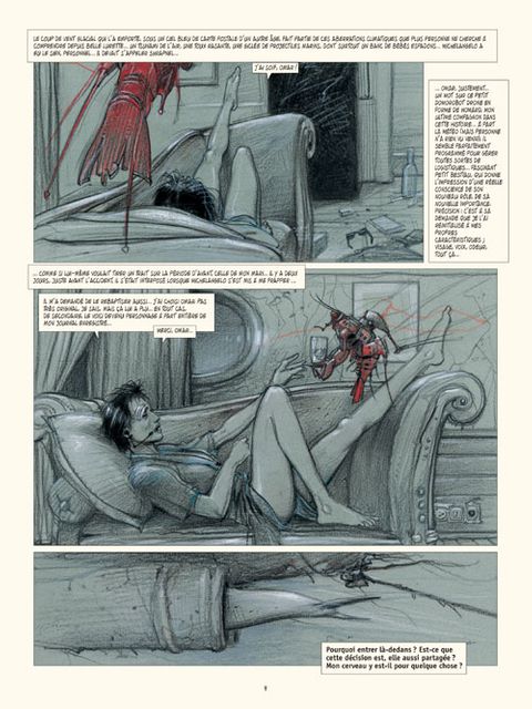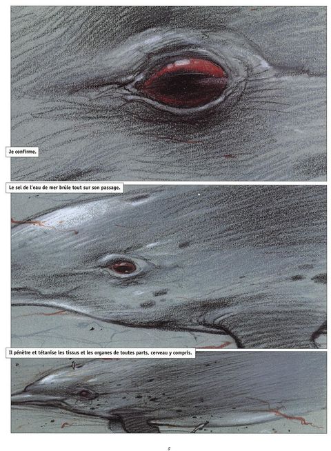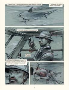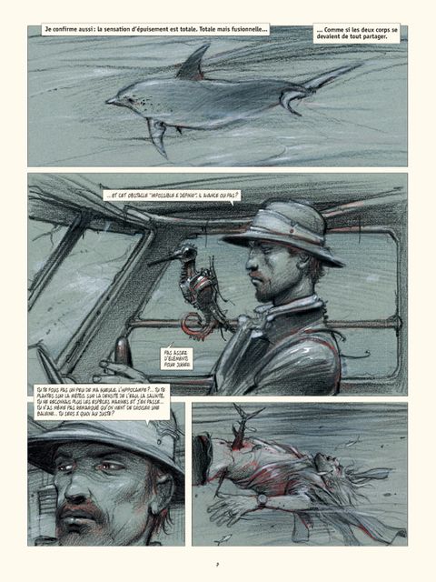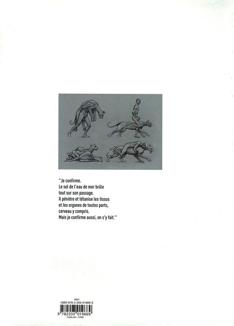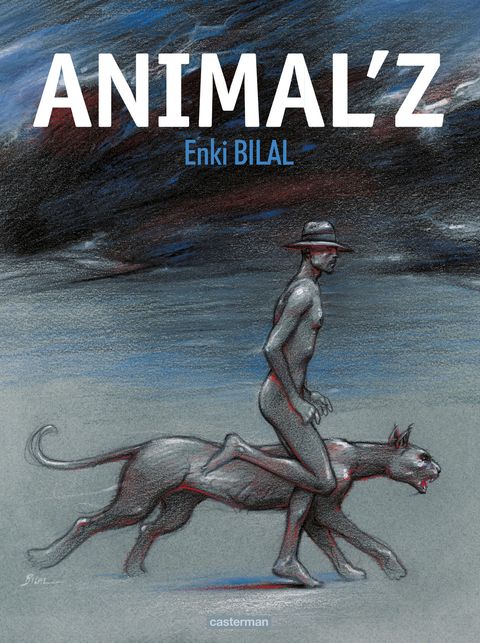 Dans ce monde dont on ne sait trop s’il est l’émanation d’une histoire parallèle ou simplement le récit de notre futur, le dérèglement climatique s’est brutalement généralisé. La catastrophe porte un nom : le Coup de Sang. Sur la planète dévastée, martyrisée, l’eau potable est soudain devenue un trésor, et la survie individuelle l’obsession de chacun. Désormais, les transports sont rares et dangereux, les communications aléatoires. Seuls quelques Eldorados très isolés, refuges protégés par leur situation géographique particulière, ont réussi à préserver un semblant d’ordre social. On ne peut les rejoindre que par la mer, immense; l’unique milieu naturel, peut-être, qui conserve quelque chance de perdurer en ces temps d’incertitude absolue… Tel est le décor, fascinant, qui sert d’écrin à Animal’z, le nouveau récit futuriste d’Enki Bilal. Fidèle à ses thèmes de prédilection (la fiction conjecturale, en étroite résonance avec les convulsions et les névroses collectives de notre présent), l’auteur de LA TRILOGIE NIKOPOL explore les conséquences possibles des dommages infligés au climat, dans un registre graphique nerveux qui comblera les attentes de ses très nombreux fidèles. Déroutant, surprenant, passionnant : un one-shot d’une centaine de pages à savourer sans retenue. Du très grand Bilal.