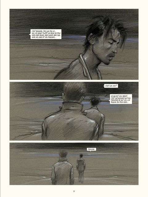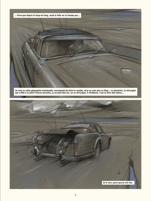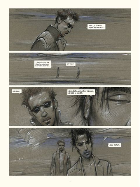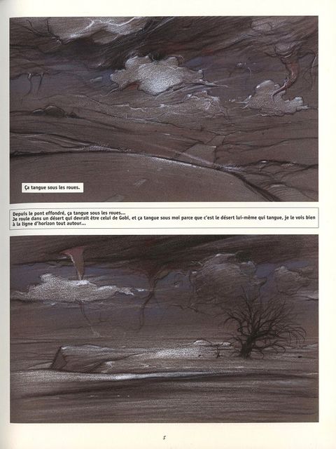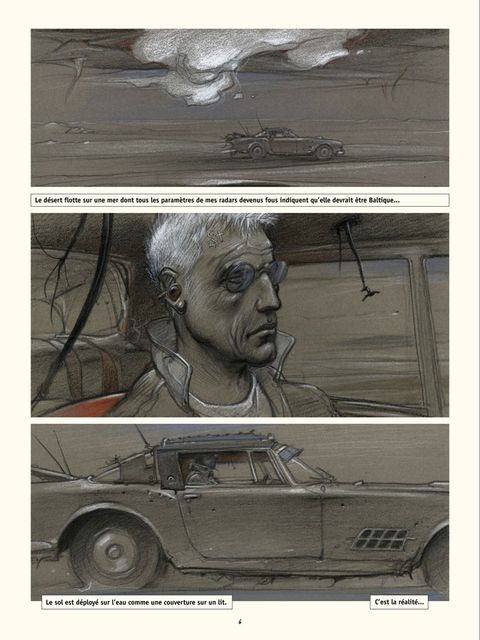 Après le « coup de sang » environnemental dont Animal'z relatait l'impact tragique et dévastateur, la planète s'apaise et se recompose, les survivants réapprennent à s'organiser. Dans cette géographie chamboulée, des déserts ont surgi. Et c'est au coeur de l'un d'entre eux, bien improbablement situé à l'emplacement de la mer Baltique, que l'on suit la trace d'un ex aumônier militaire énigmatique, installé au volant d'une Ferrari électrique lancée à plein régime. Trois personnages vont croiser sa route : deux jeunes hommes qu'il sauve in extremis de la mort par déshydratation, et un rapace blessé par balle, dont il répare l'aile cassée... Pour son nouvel album, Enki Bilal renoue avec l'univers dont il avait jeté les bases dans Animal'z. Le second volet d'une trilogie, lui aussi avec sa gamme chromatique particulière : après les bleus et les gris d'Animal'z, ce sont ici les beiges et les bruns qui dominent. Un titre très attendu, assurément l'un des événements éditoriaux de la fin d'année.