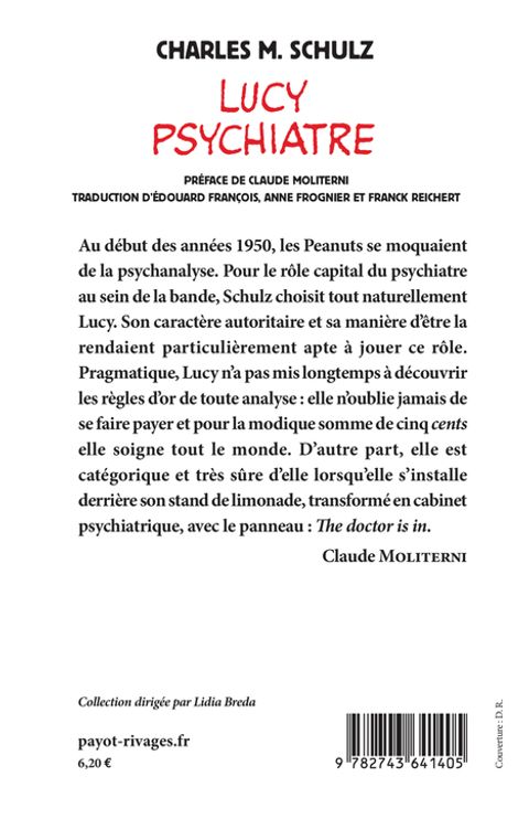 Au début des années 1950, les Peanuts se moquaient de la psychanalyse. Pour le rôle capital du psychiatre au sein de la bande, Schulz choisit tout naturellement Lucy. Son caractère autoritaire et sa manière d'être la rendaient particulièrement apte à jouer ce rôle. Pragmatique, Lucy n'a pas mis longtemps à découvrir les règles d'or de toute analyse : elle n'oublie jamais de se faire payer et pour la modique somme de cinq cents elle soigne tout le monde. D'autre part, elle est catégorique et très sûre d'elle lorsqu'elle s'installe derrière son stand de limonade, transformé en cabinet psychiatrique, avec le panneau : «The doctor is in». Claude Moliterni