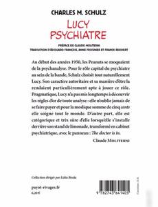 Au début des années 1950, les Peanuts se moquaient de la psychanalyse. Pour le rôle capital du psychiatre au sein de la bande, Schulz choisit tout naturellement Lucy. Son caractère autoritaire et sa manière d'être la rendaient particulièrement apte à jouer ce rôle. Pragmatique, Lucy n'a pas mis longtemps à découvrir les règles d'or de toute analyse : elle n'oublie jamais de se faire payer et pour la modique somme de cinq cents elle soigne tout le monde. D'autre part, elle est catégorique et très sûre d'elle lorsqu'elle s'installe derrière son stand de limonade, transformé en cabinet psychiatrique, avec le panneau : «The doctor is in». Claude Moliterni
