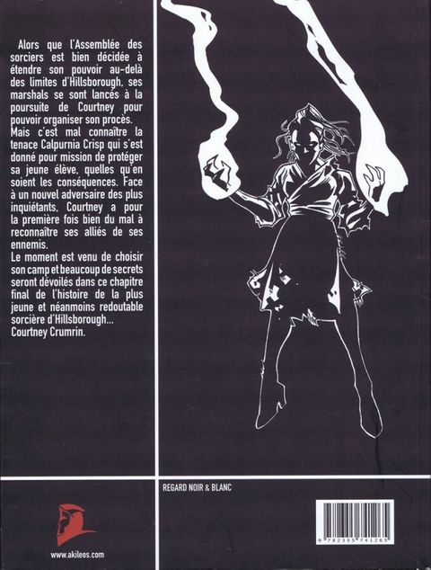 Alors que le conseil des sorciers est bien décidé à conquérir le monde, ses marshalls se sont lancés à la poursuite de Courtney et comptent la ramener rapidement pour organiser son procés. Mais c'est mal connaître la tenace Calpurnia crisp qui s'est donné pour mission de protéger la jeune sorcière quelles qu'en soiet les conséquences. elles doivent rester soudées face à un nouvel adversaire, des plus redoutables. et pour la première fois Courtney peine à reconnaître ses alliés de ses ennemis. Le moment est venu de choisir son camp et beaucoup de secrets seront dévoilés dans ce chapitre final de l'histoire de la plus jeune et néanmoins redoutable sorcière de Hillsborough... Courtney Crumrin.