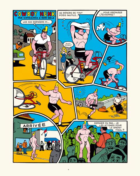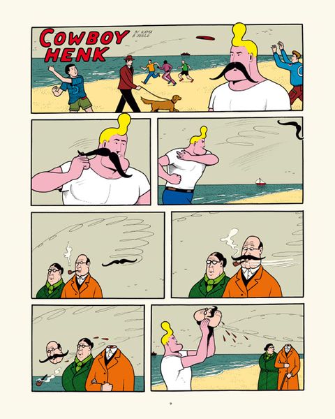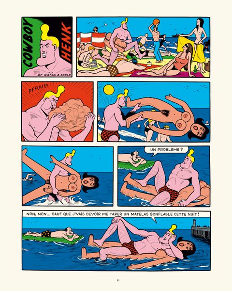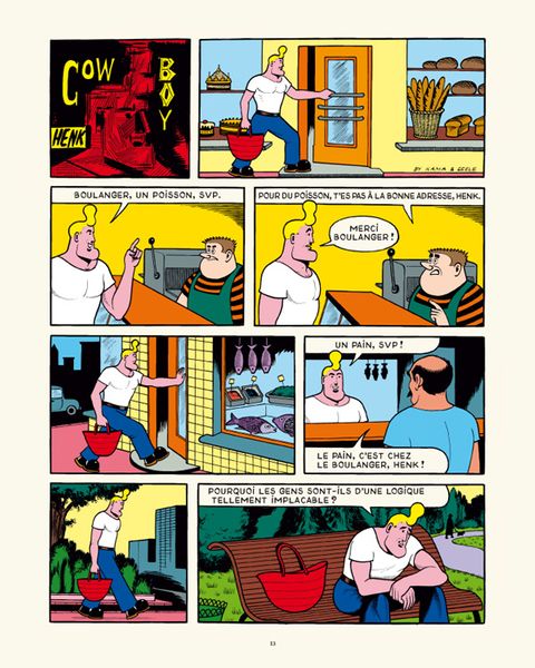 «Cowboy Henk, ce n’est pas toujours bien, mais quand c’est bien, c’est VRAIMENT bien.» Umberto Eco. Avec sa houppette blonde, Cowboy Henk pourrait être le pendant surréaliste de Tintin. Politiquement incorrect, parfois potache mais tendre aussi, Cowboy Henk est un héros vieux de 30 ans, véritable icône pop et absurde ! Figure incontournable de la culture flamande, il est apparu chaque semaine de 1981 à 2012 dans l'hebdomadaire flamand à gros tirage Humo. Et quand il traverse la frontière, Cowboy Henk est publié dans la cultissime revue RAW d'Art Spiegelman, avant de faire des apparitions en France dans Fluide Glacial, Psikopat ou Hara Kiri dans les années 80 et 90. Amateur du nonsense, et heritier direct du surréalisme belge, Cowboy Henk contient autant de références à la bande dessinée américaine classique qu'au dadaïsme. Herr Seele avoue pratiquer un humour vache comme Magritte et sa peinture vache : peinte avec la queue d'une vache.