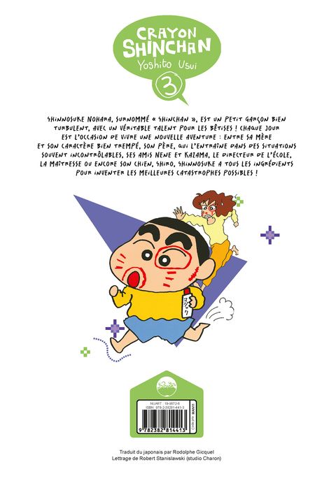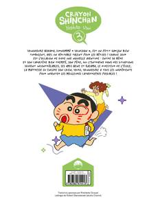 Shinnosuke Nohara, surnommé « Shinchan », est un petit garçon bien turbulent, avec un véritable talent pour les bêtises ! Chaque jour est l'occasion de vivre une nouvelle aventure : entre sa mère et son caractère bien trempé, son père, qui l'entraîne dans des situations souvent incontrôlables, ses amis Nene et Kazama, le directeur de l'école, la maîtresse ou encore son chien, Shiro, Shinnosuke a tous les ingrédients pour inventer les meilleures catastrophes possibles !Découvrez la série culte de Yoshito Usui dans une toute nouvelle réédition, au sein de la collection Kôten. D'abord publié aux éditions Futabasha et adapté en animé, Crayon Shinchan est une oeuvre humoristique et universelle de renommée internationale.