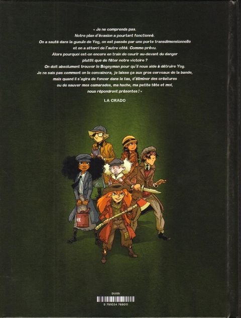 Alors que toute la team des survivants s'est laissée larguer au cœur de Yog-Sothoth afin d'échapper à la New York infernale de la noire divinité, Grandpa et les enfants découvrent qu'ils ont ainsi voyagé dans le temps ! Les voici donc revenus dans Big Apple... mais en 1928 ! L'occasion d'aller visiter H.P. Lovecraft, l'écrivain qui semble au cœur de tous les problèmes de Chief, Vanille et les autres... mais qui pourrait aussi être le terrible « Bogeyman »...L'incroyable final de Créatures, la nouvelle référence du thriller fantastique jeunesse !