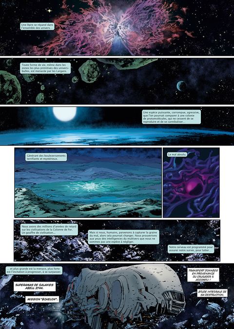 On enchaîne directement après la conclusion du tome deux, sans résumé (discipline qui aurait été pertinente sur une série aussi touffue) mais avec une introduction très pédagogique qui nous résume la problématique de ce peuple maléfique qui cherche la destruction. Peut-être conscient de ses démons, Christophe Bec simplifie donc résolument (...) Voir le commentaire