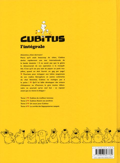 Attention, chien dormant ! Parce qu'il avait beaucoup de chien, Cubitus devint rapidement une star internationale de la bande dessinée ! II ne savait pas que la gloire le détournerait de son aspiration à la tranquillité. C'est qu'il est peu aisé de piquer un petit roupillon, quand on doit fournir un gag par page ! Pourtant, pour échapper aux lubies saugrenues de son maître Sémaphore et autres cuistreries du chat Sénéchal, Cubitus ne rechigne pas à la peine ! Qu'il lui faille développer des trésors d'éloquence ou d'humour, le gros toutou débonnaire ne poursuit qu'un seul but : se reposer avant que ne vienne la fatigue !